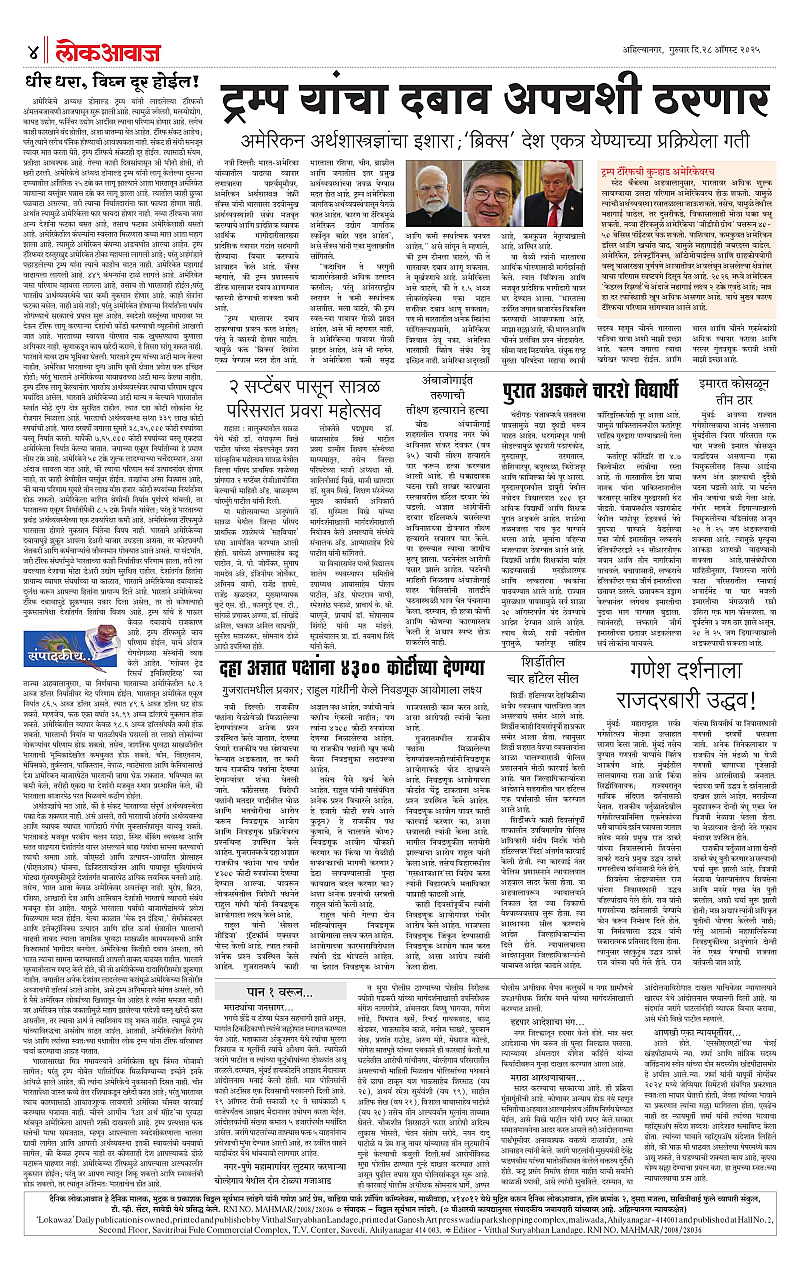 28-08-2025 Page: 4 August 28, 2025 28-08-2025 2 3 4 5 Page 1Page 2Page 3Page 4Page 5Page 6 × 28-08-2025 lokawaj 28 aug 2025_001lokawaj 28 aug 2025_002lokawaj 28 aug 2025_003lokawaj 28 aug 2025_004lokawaj 28 aug 2025_005lokawaj 28 aug 2025_006 << First << 4 >> Last >> Page no 1Page no 2Page no 3Page no 4Page no 5Page no 6