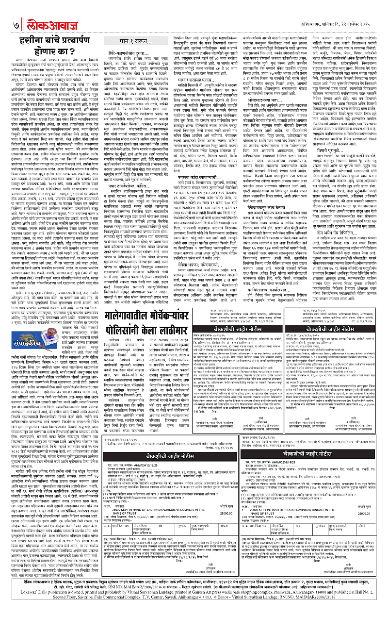 22-11-2025 Page: 7 November 22, 2025 22-11-2025 5 6 7 8 Page 1Page 2Page 3Page 4Page 5Page 6Page 7Page 8 × 22-11-2025 Lokawaj 22 Nov 2025_001Lokawaj 22 Nov 2025_002Lokawaj 22 Nov 2025_003Lokawaj 22 Nov 2025_004Lokawaj 22 Nov 2025_005Lokawaj 22 Nov 2025_006Lokawaj 22 Nov 2025_007Lokawaj 22 Nov 2025_008 << First << 7 >> Last >> Page no 1Page no 2Page no 3Page no 4Page no 5Page no 6Page no 7Page no 8