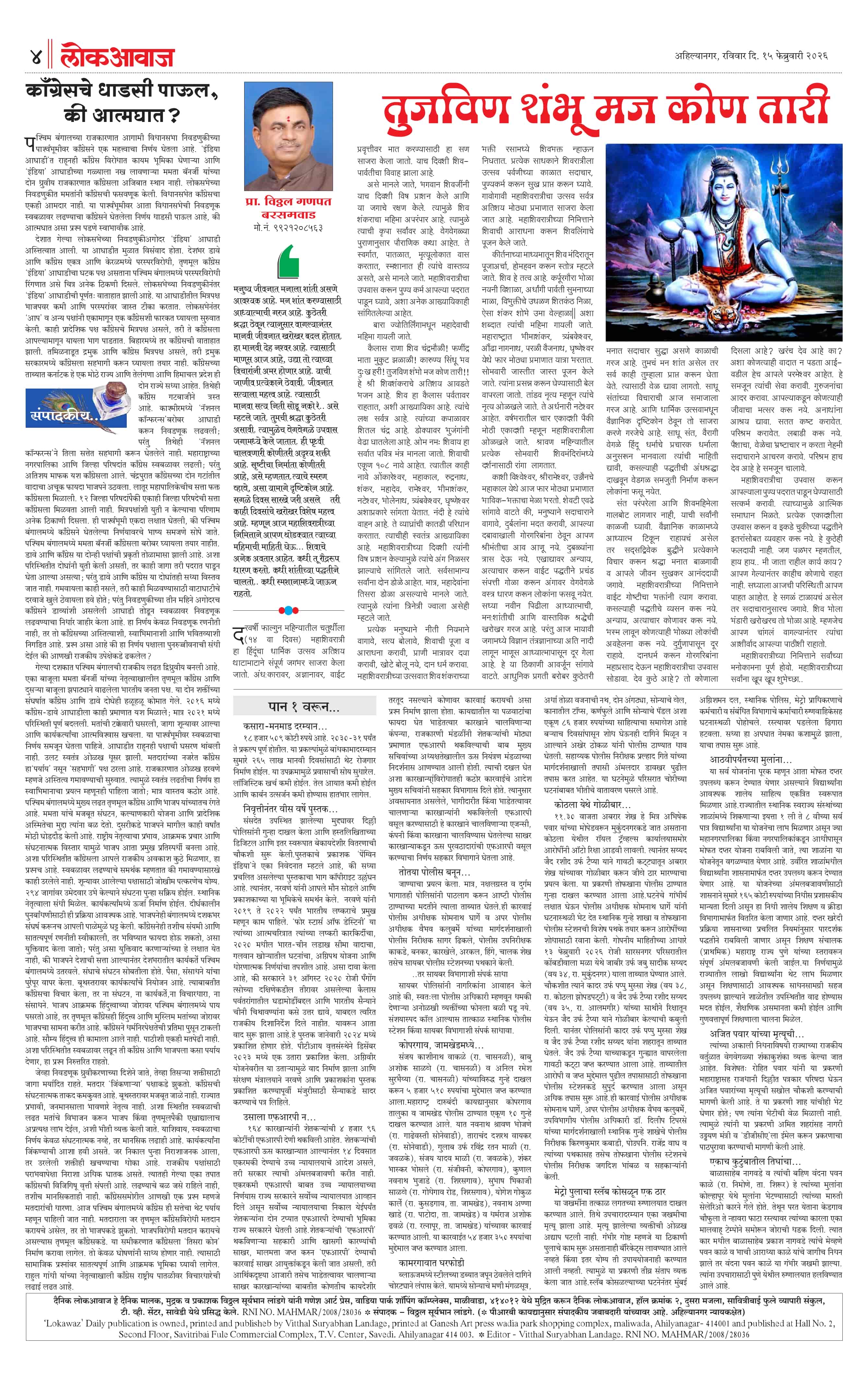 15-02-2026 Page: 4 February 15, 2026 15-02-2026 2 3 4 5 Page 1Page 2Page 3Page 4Page 5Page 6 × 15-02-2026 lokawaj 15 feb 2026_001lokawaj 15 feb 2026_002lokawaj 15 feb 2026_003lokawaj 15 feb 2026_004lokawaj 15 feb 2026_00515 Feb page 6 << First << 4 >> Last >> Page no 1Page no 2Page no 3Page no 4Page no 5Page no 6