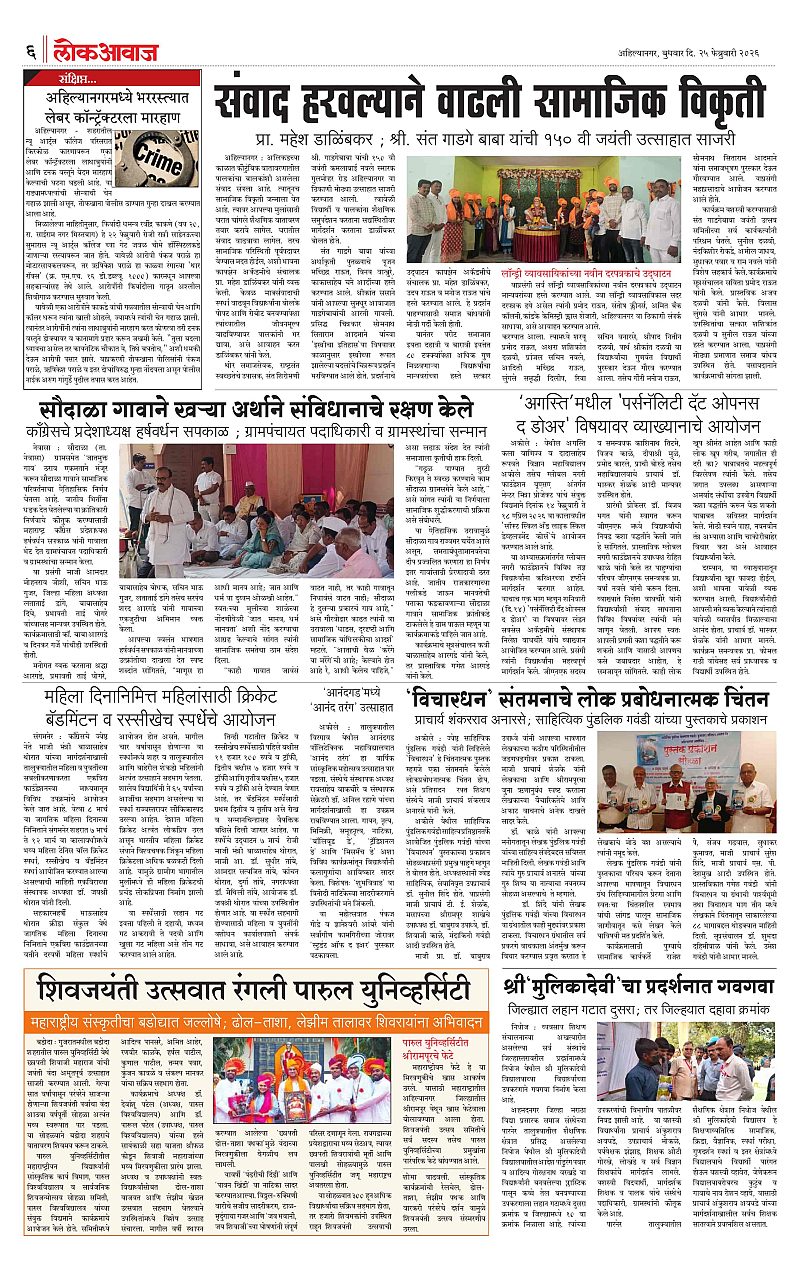 25-02-2026 Page: 6 February 25, 2026 25-02-2026 4 5 6 7 Page 1Page 2Page 3Page 4Page 5Page 6Page 7Page 8 × 25-02-2026 LOKAWAJ 25 FEB 2026_001LOKAWAJ 25 FEB 2026_002LOKAWAJ 25 FEB 2026_003LOKAWAJ 25 FEB 2026_004LOKAWAJ 25 FEB 2026_005LOKAWAJ 25 FEB 2026_006LOKAWAJ 25 FEB 2026_007LOKAWAJ 25 FEB 2026_008 << First << 6 >> Last >> Page no 1Page no 2Page no 3Page no 4Page no 5Page no 6Page no 7Page no 8